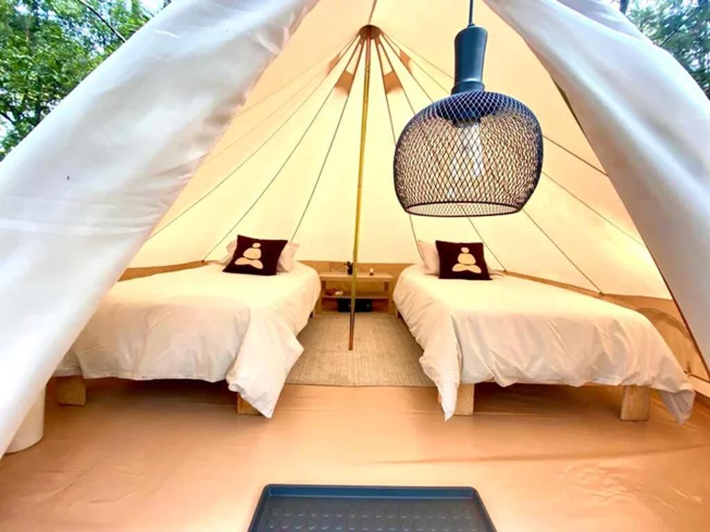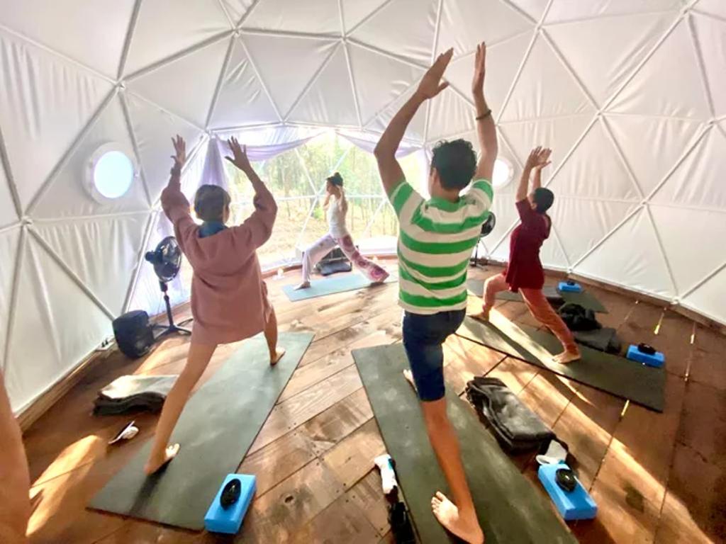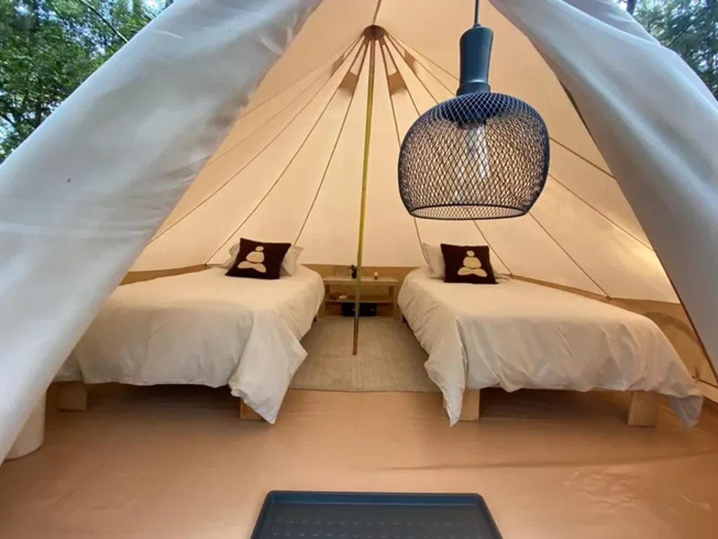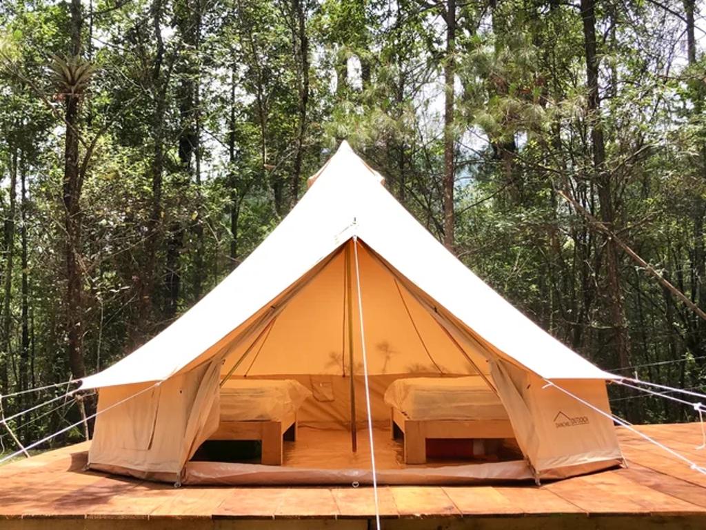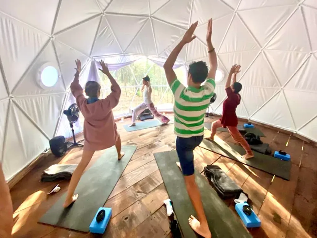 Om Shanti Forest consists of 1 geo-dome,4 glamping safari tents, and one villa with two bedrooms, a kitchen, a living room, and all the comfort. The grounds accommodate a relaxation area with natural gardens, a fireplace, sunbeds, and more. Not to forget to mention a one-of-a-kind yoga shala. Accommodation is for 12 people.