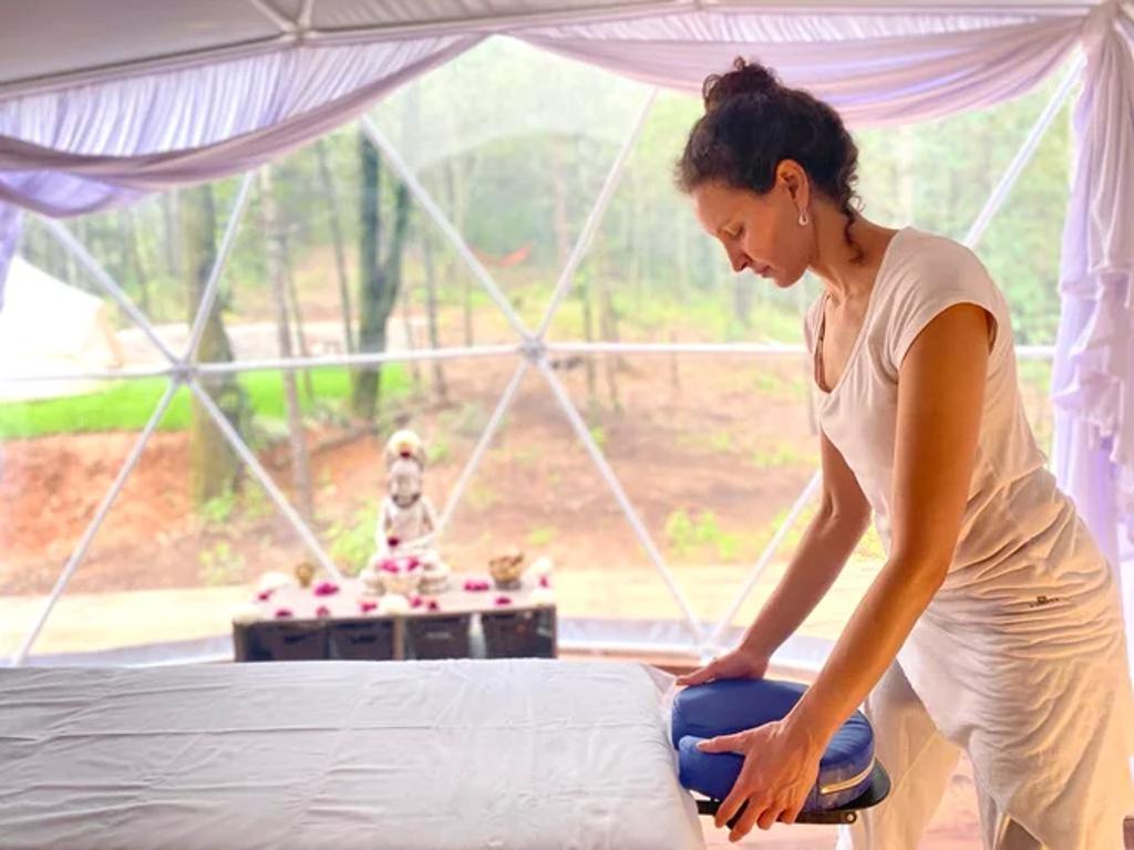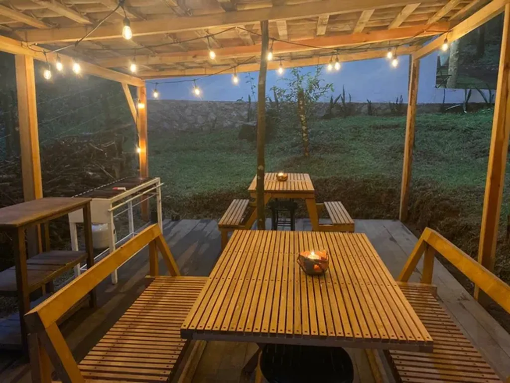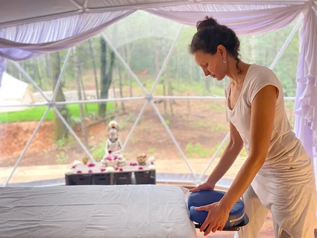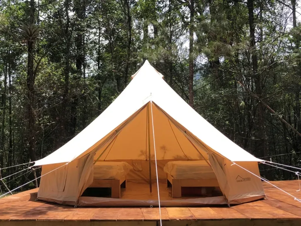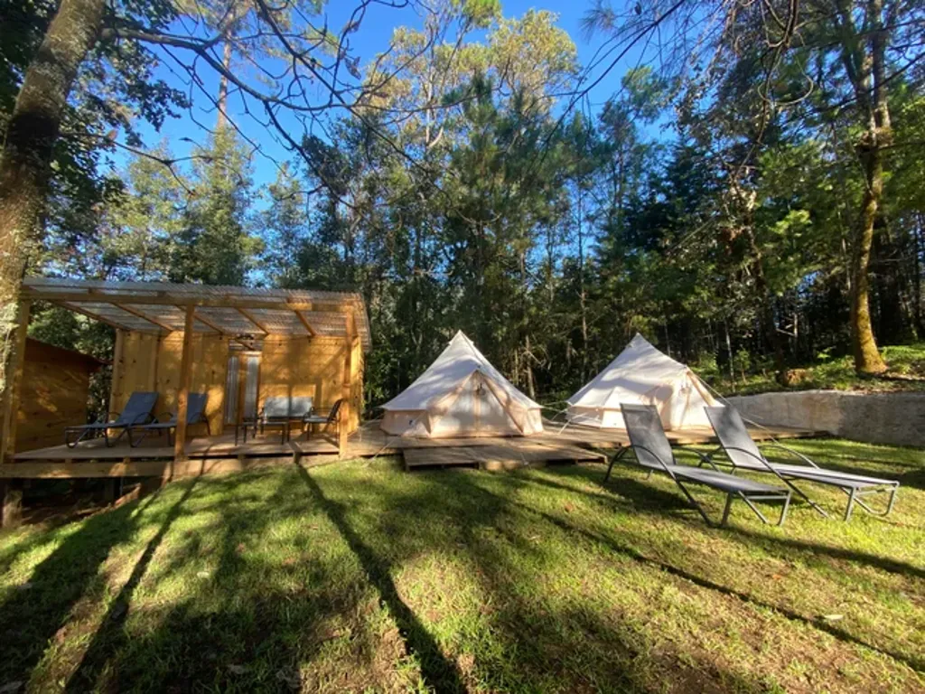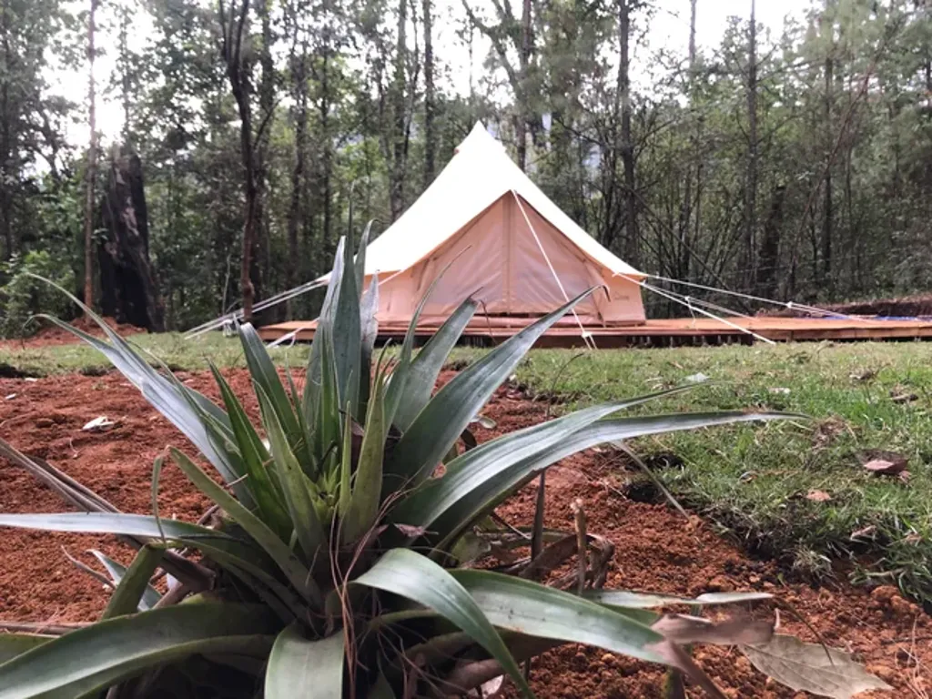 Om Shanti Forest consists of 1 geo-dome,4 glamping safari tents, and one villa with two bedrooms, a kitchen, a living room, and all the comfort. The grounds accommodate a relaxation area with natural gardens, a fireplace, sunbeds, and more. Not to forget to mention a one-of-a-kind yoga shala. Accommodation is for 12 people.