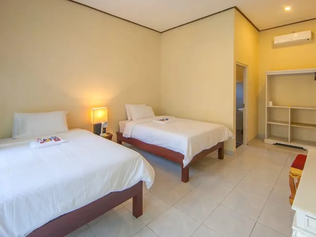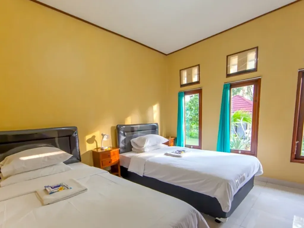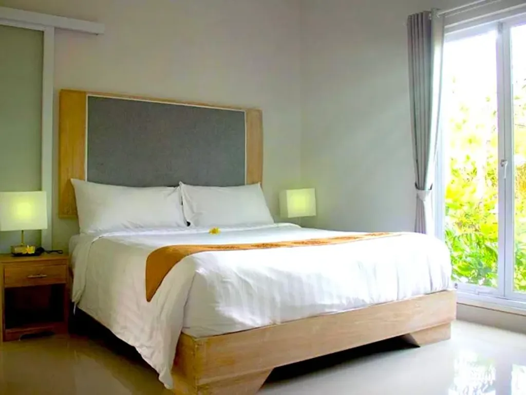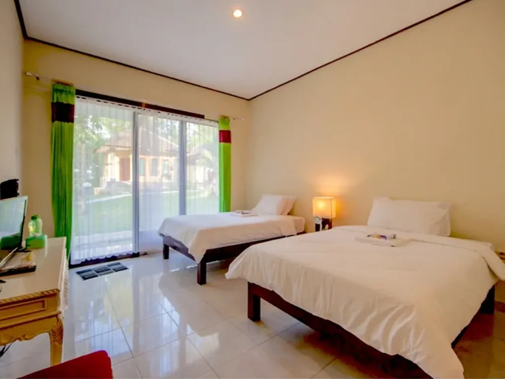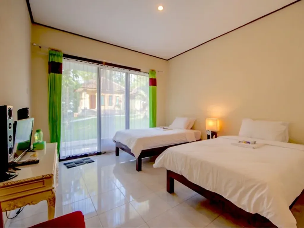 The rooms are designed in Balinese-style guesthouses / bungalows. Each room is fully equipped with an air-conditioner, TV, desk, shower, and wardrobe. They also have laundry service, swimming pool, and spa. Their team is happy to welcome you in their resort!