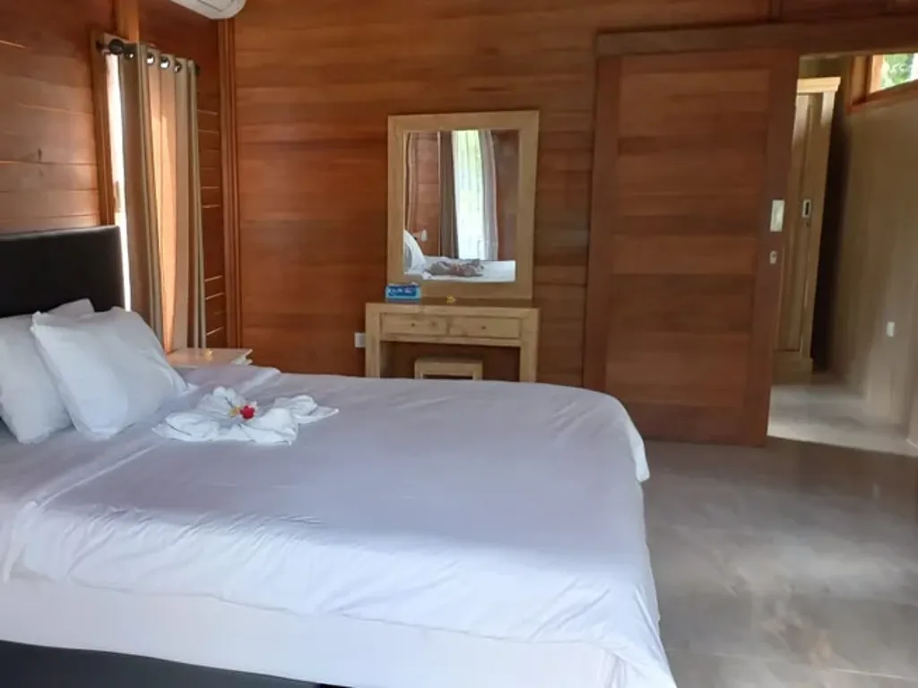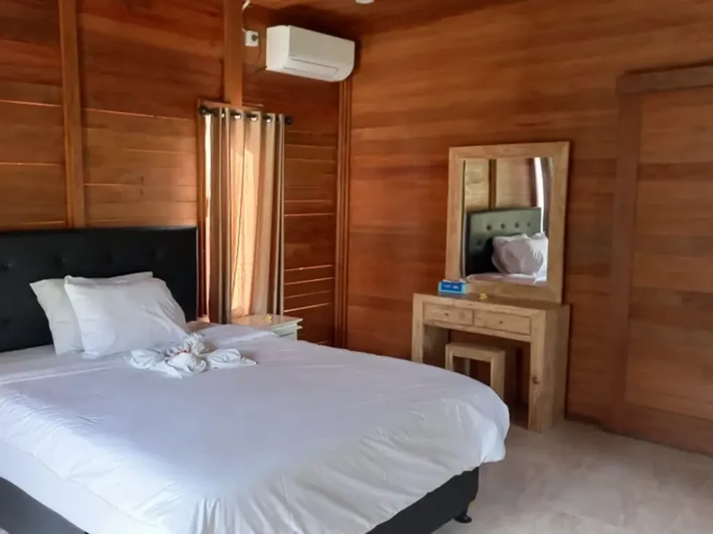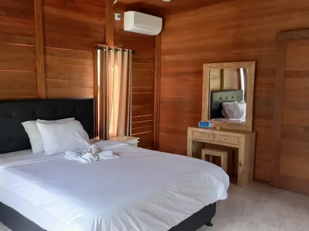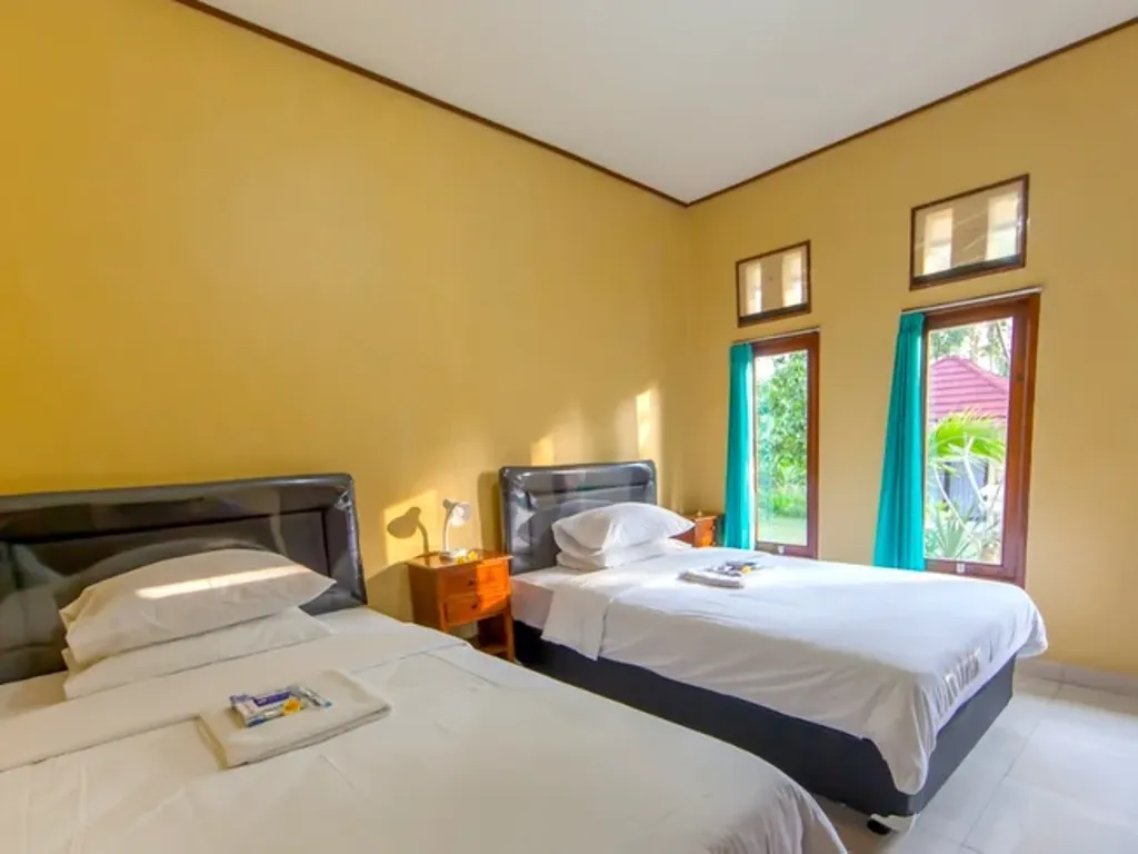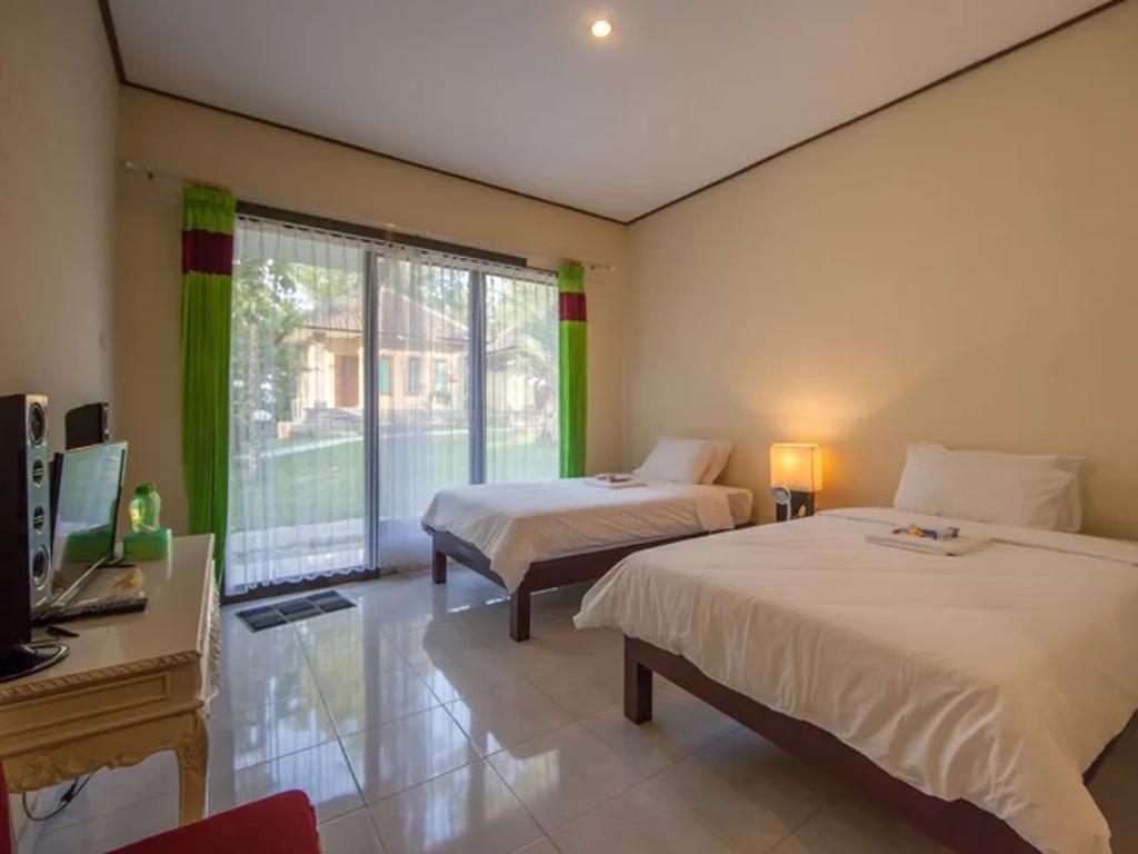The rooms are designed in Balinese-style guesthouses / bungalows. Each room is fully equipped with an air-conditioner, TV, desk, shower, and wardrobe. They also have laundry service, swimming pool, and spa. Their team is happy to welcome you in their resort!