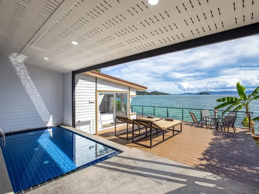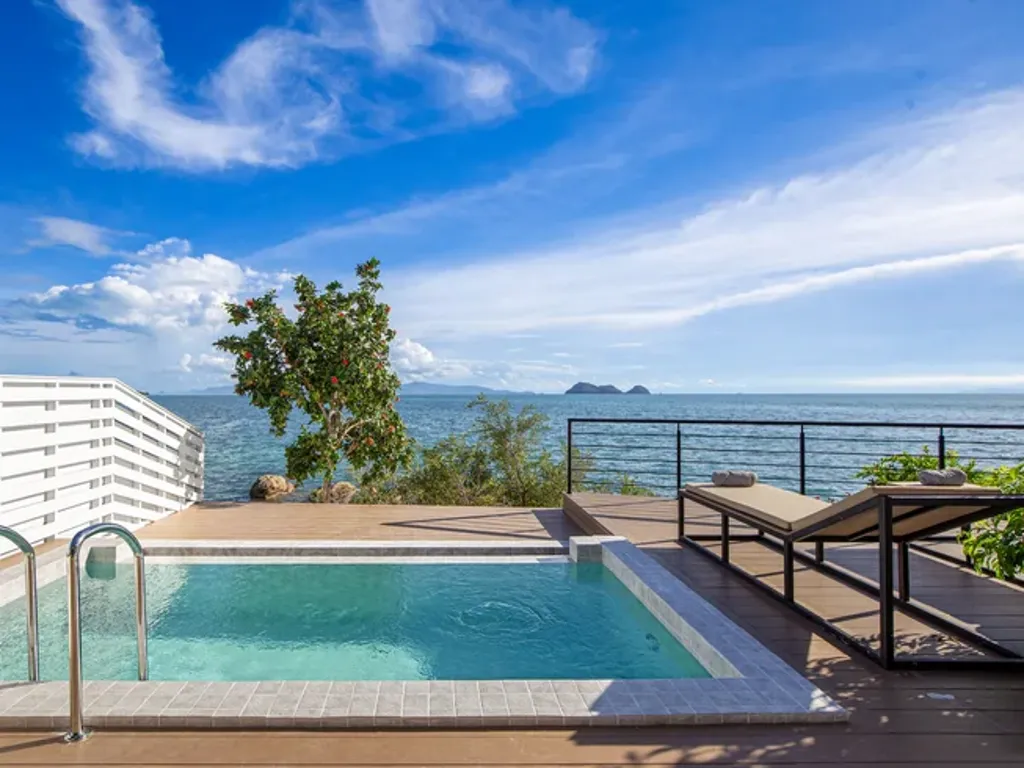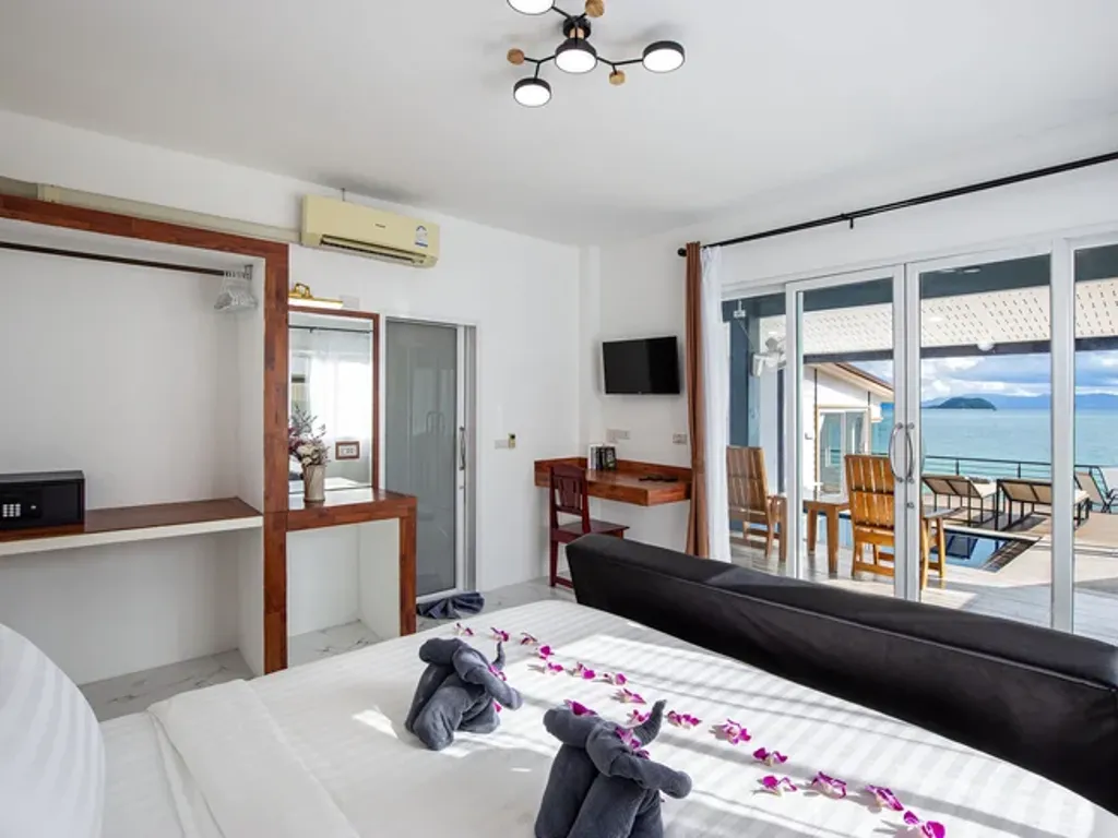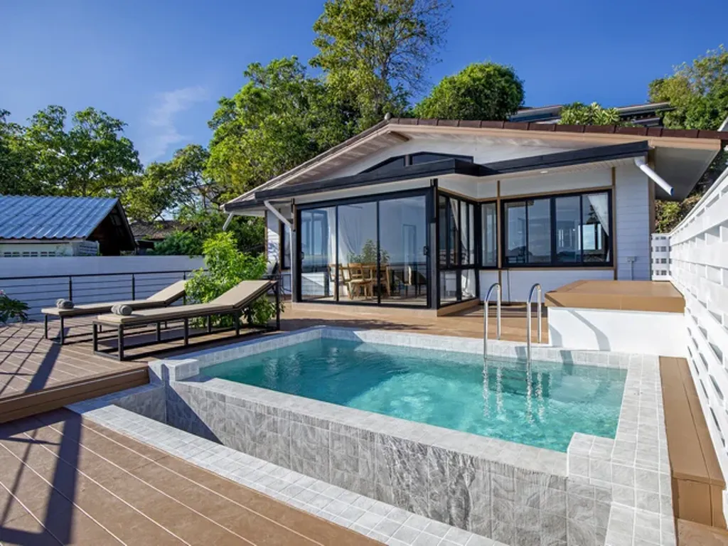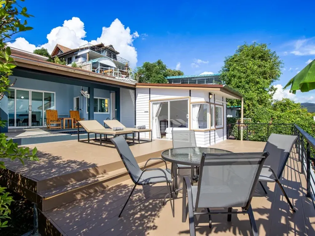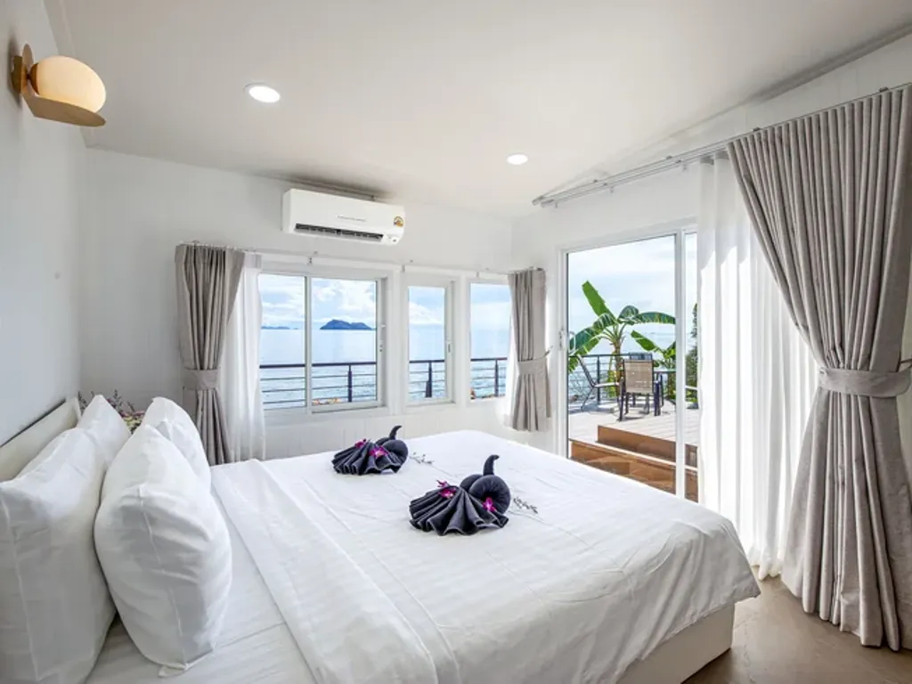 A tasteful private retreat with modern design, this bungalow features a double bed, air-conditioning, an ensuite bathroom, a separate kitchen equipped with essentials, a lounge with comfy couch, and a spacious balcony for breathtaking views of the Thai Gulf and Ang Thong Marine Park.