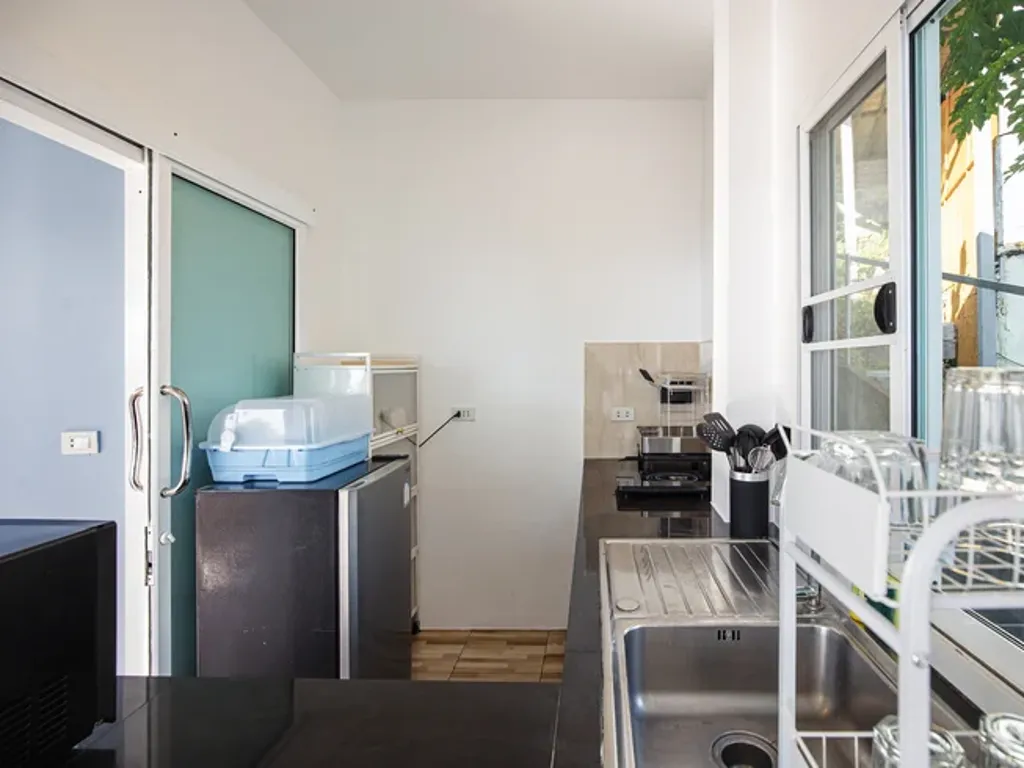 Private bungalow close to nature, featuring a double bed, air-conditioning, an ensuite bathroom, a separate kitchen equipped with essentials, a wardrobe, and a spacious balcony for sea view enjoyment.